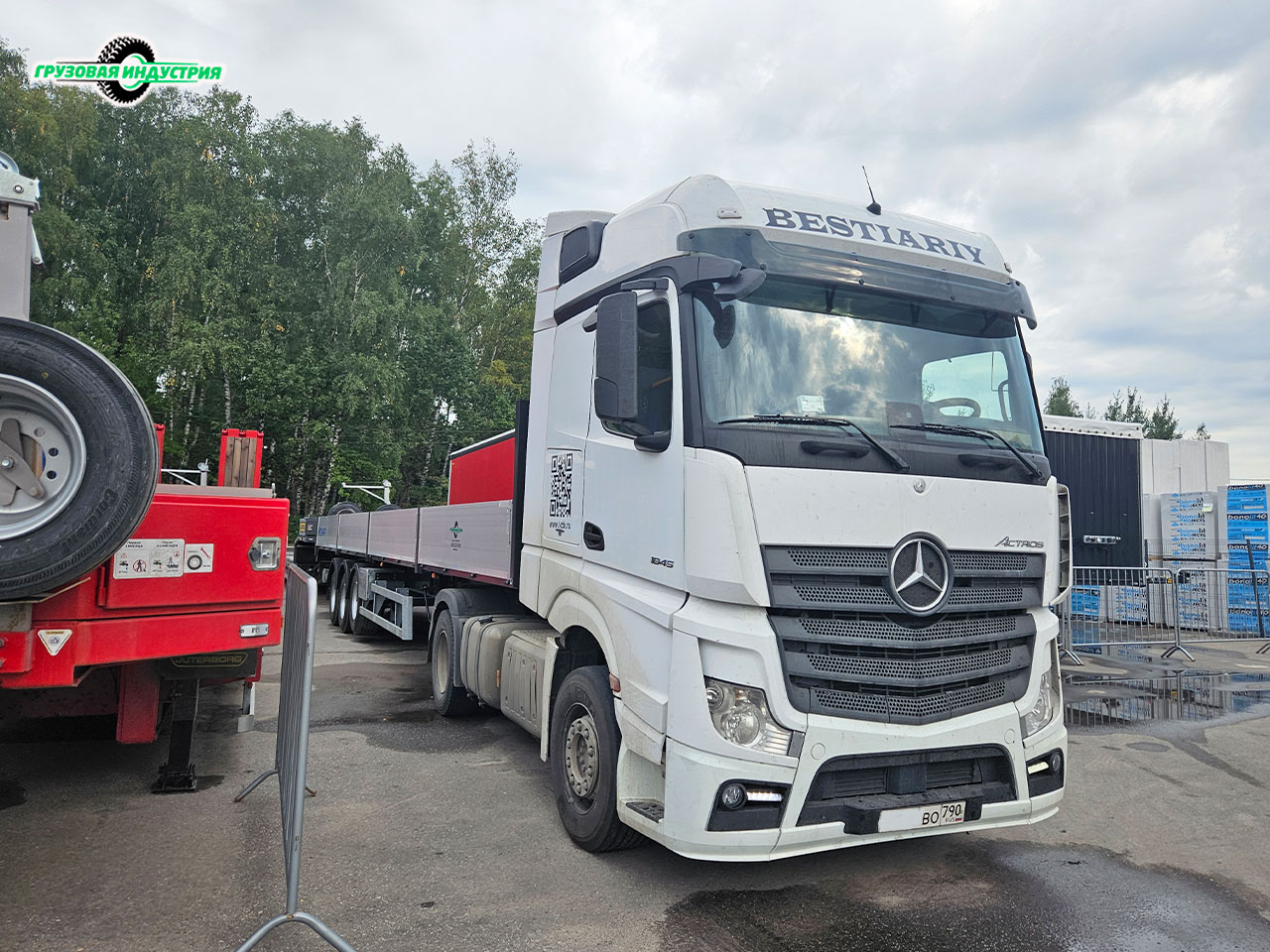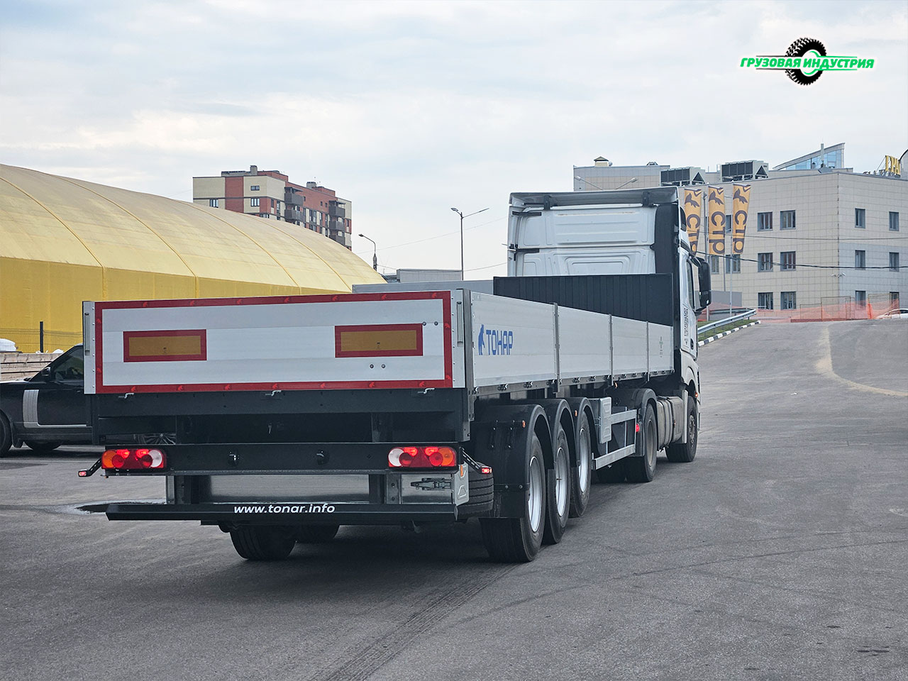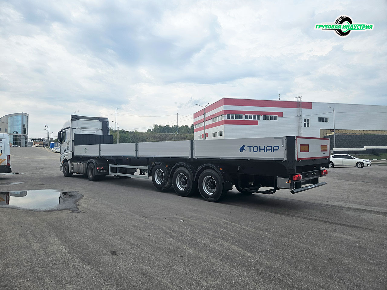 Отгрузка сцепки тягач Mercedes 4x2 и полуприцепа бортовая платформа Тонар B3-13K в Москву 23 августа 2024г.